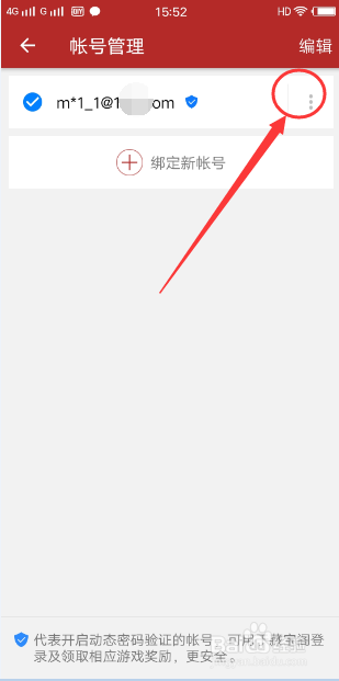 接下来,进入到账号办理页面,显示了玩家所有绑定该将军令的账号名称,小编就一个,点击账号右侧三个点图标。