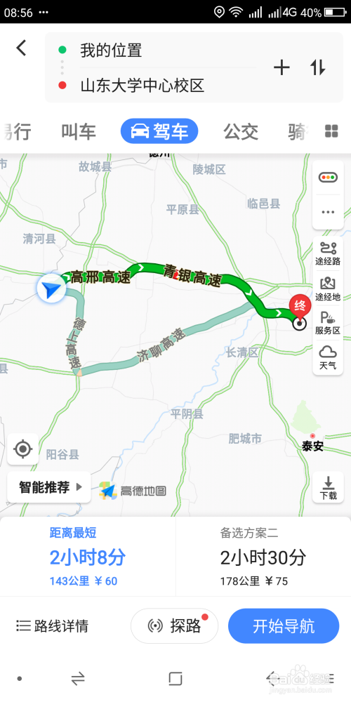 在“输入框”输入要去的目标地,好比“山东年夜学”