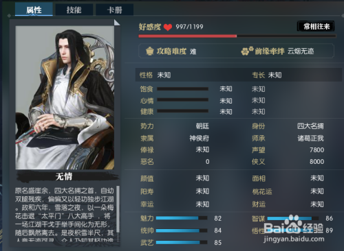 四年夜名捕 铁手无情冷血追命,这四个是可以攻略的,不外也比力难,归正在游戏中,越主要,越壮大的NPC,攻略难度越年夜,