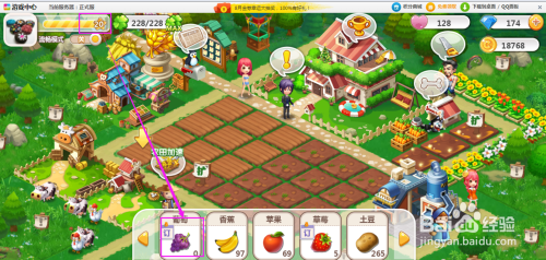 用鼠标按住葡萄不放,在空白的农田上划过一下;