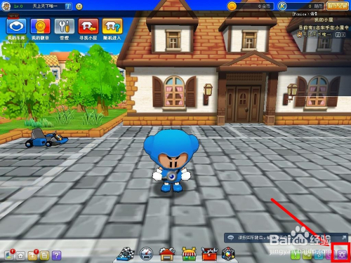 打开跑跑卡丁车网游,在游戏本家儿界面,如下图所示,点击齿轮图标按钮——"系统设置"按钮。