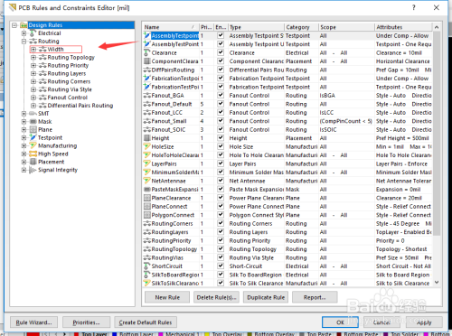 在routing中打开width选项卡,如下图所示