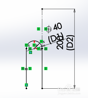 (4)实现动画的关头步调之一,选中钢丝绳草图路径的右直线的端点,与小垫板的前边线,添加重合约束。