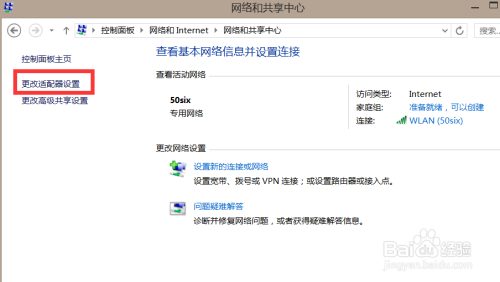 5.进入之后,点击左边竖栏中的【更改适配器设置】这个按钮,如下图所示。