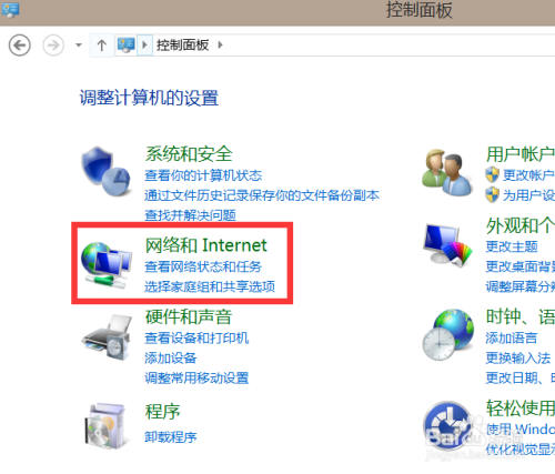 3.进入【节制面板】本家儿页之后,找到【收集和Internet】选项并点击之,如下图所示。
