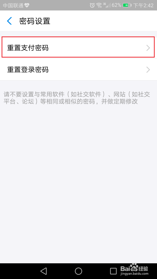 点击“重置付出密码”;