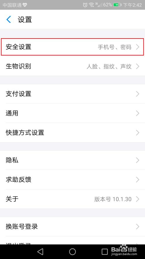 点击“平安设置”;
