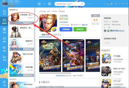 下载完当作再点击左侧的王者荣耀