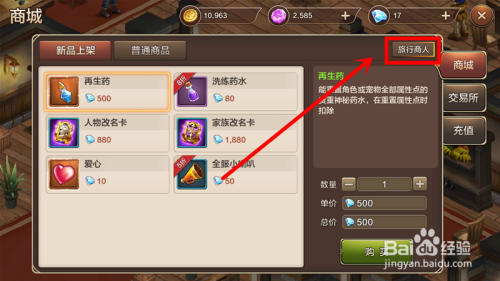 在打开的商城窗口,点击右上角的“观光商人”——“查理”,即可当即传送到查理的身旁,点击查理即可找开查理的商铺。