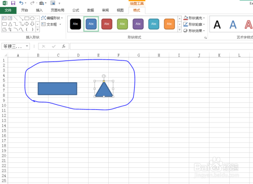 c.选择需要的外形,然后在表格中拖曳鼠标绘制即可,教程以矩形和三角形为例。