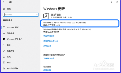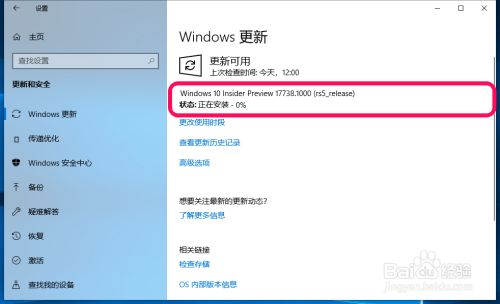 下面介绍Windows 10家庭版从17713进级到17738版系统的过程。