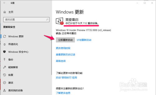 Windows 10家庭版从17713进级到17735版系统,当Windows 10 Insider Preview 17735.1000 (rs5_release)系统安装完当作后,显示需要重启电脑,但我们点击:当即从头启动后,电脑重启但不克不及继续进入系统的设置装备摆设更新,而是重启了一次电脑又进入原系统的桌面。