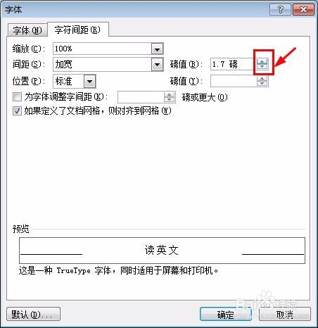 第四步:经由过程鼠标左键单击上下小三角来调整字间距磅值,调整完当作后单击“确定”按钮。