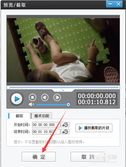 接着显示打开视频的环境,可以先执行截取片段操作,若是没需要,则直接点击确定按钮。