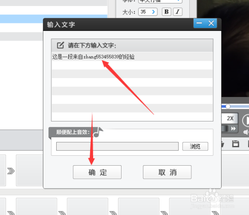 然后再右侧视频中,先选摘要添加字幕的时候段,选好后双击视频界面,弹出输入字幕的文本框,输入想要显示的字幕,完当作后点击确定。
