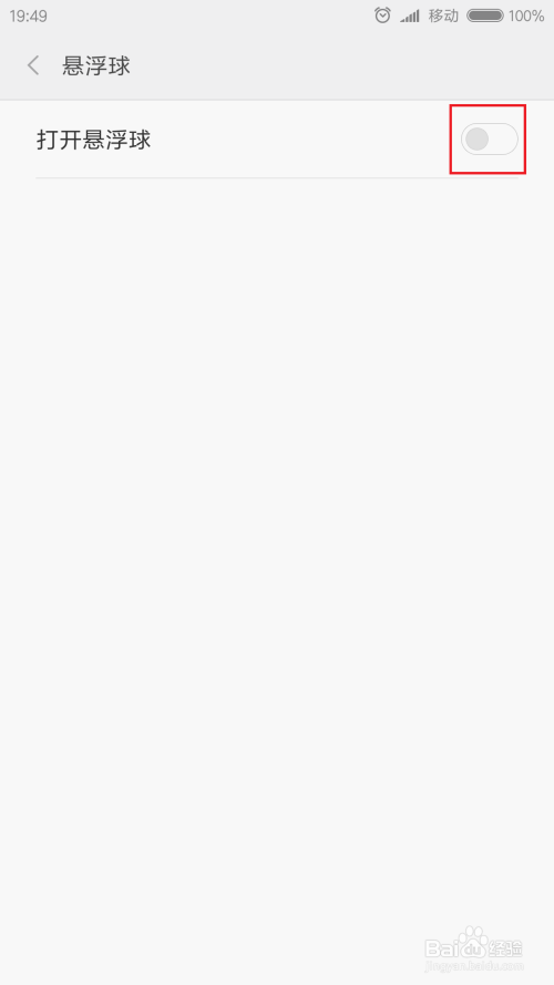 接下来,我们可以看到悬浮球默认处于封闭状况,我们点击页面中的开关,将悬浮球开关打开,如许我们就可以利用悬浮球了。