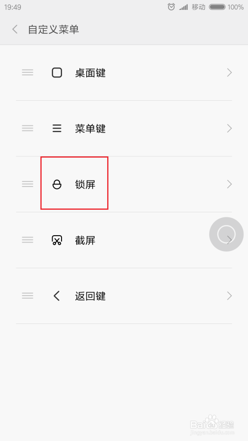 这里以默认的锁屏功能按钮,我们点击该功能按钮即可进入自界说设置页面。在自界说页面中,即可选择其他待选的功能。