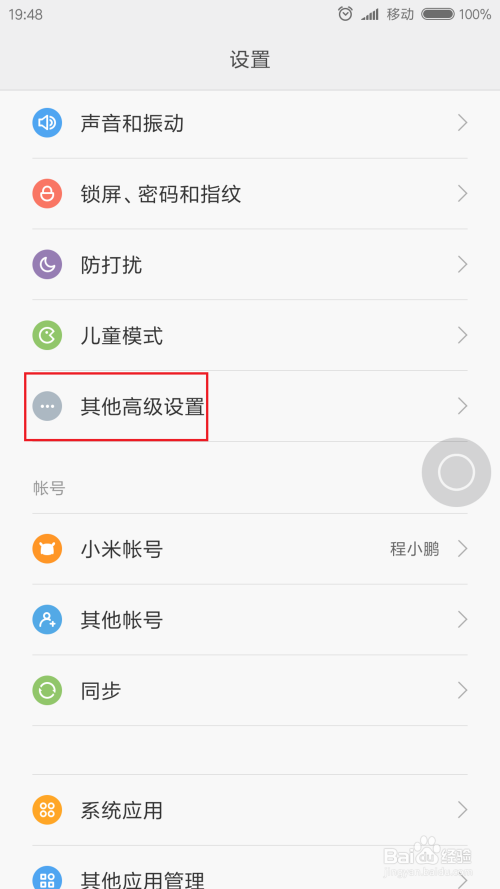 首先,请大师确保本身的手机已经进级到了最新的MIUI系统,进级完毕之后,我们点击桌面上中的“设置-其他高级设置”应用,进入MIUI系统设置页面。