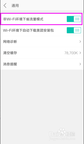 点击【非wifi情况下省流量模式】。开启后,按钮就会酿成绿色的。