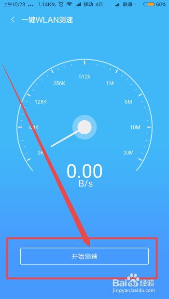 然后在打开的页面中点击中心的起头测速按钮,然后就可以看到当前的wlan速度了,半斤八两于几多M的宽带,如许就可以测试wlan上网速度了。