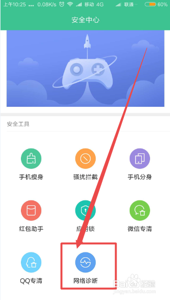然后在打开平安中间页面中往下拉,找到收集诊断选项,点击它。