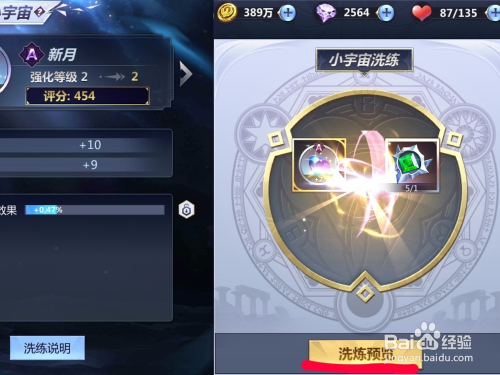 点击洗练预览可以看到小宇宙之前的属性,选择洗练就可以替代新的属性了。