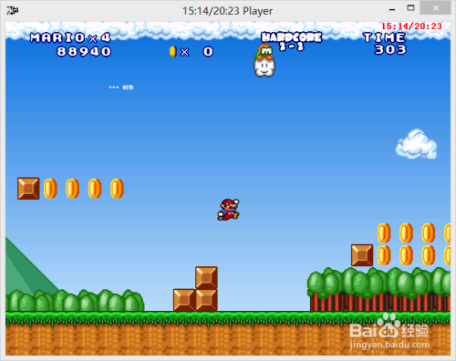 这里跳过砖块。四格高度的跳跃不难,后面还需要用到六格高度的跳跃。