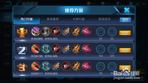 最后我们看一下出装方案,别离给大师列举了胜率前三的热点方案;系统保举的持续输出、打野爆发、打野持续输出的方案;排名前三的年夜神利用的方案及职业选手利用的包含指标的目的性、补刀结果、爆发流、输出规模等维度的方案,大师可以随意搭配测验考试,选择最适合本身打法的即可!