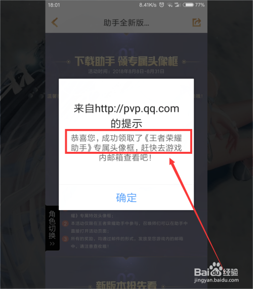 我们打开登录王者荣耀游戏之后,我们从邮件接收页面就能看到本身在王者荣耀助手的活动里,领取到的专属头像框了 。