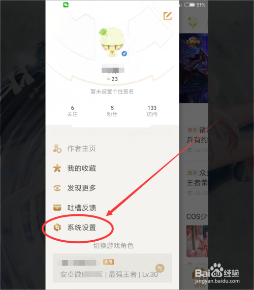 接着,我们在王者荣耀助手小我本家儿菜单页面标的目的下滑动,找到“系统设置 ”按钮,点击进入助手系统设置页面 。