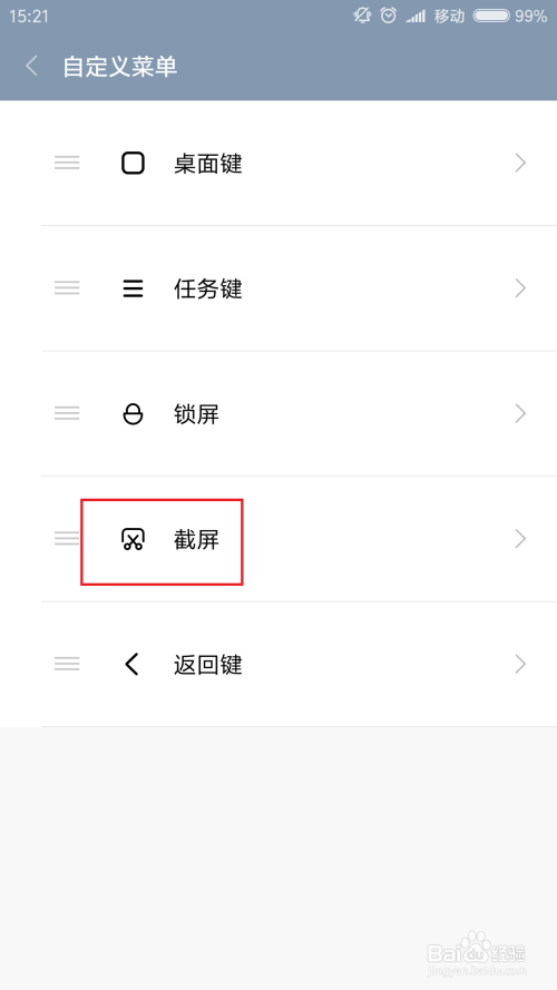 在自界说功能菜单页面中,我们点击选择某一个功能按钮为“截屏”功能,在悬浮球的功能按钮显示页面中,点击对应的按钮即可利用截屏功能。因为悬浮球无法被截屏,这里就不克不及演示了。