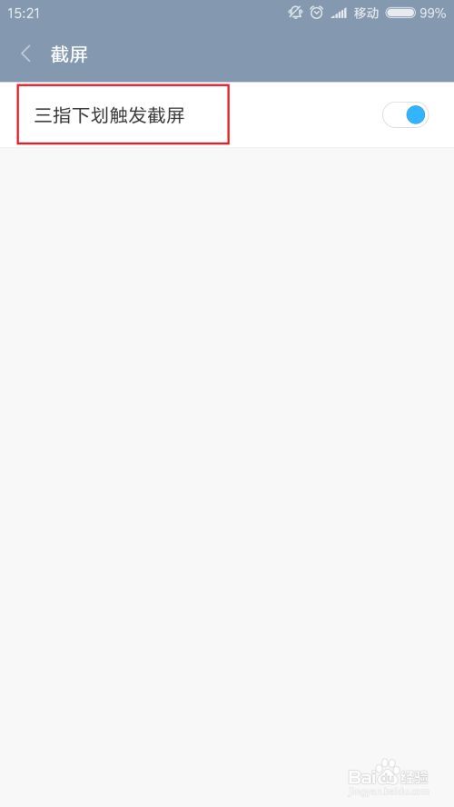接下来,我们可以看到三指下滑截屏功能的开启开关,我们点击该开关之后,然后即可利用该功能。在手机桌面中,三指下滑即可主动截取当前的手机屏幕,也是比力便利的啦,小伙伴们选择本身喜好的功能测验考试即可。