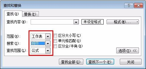 第二步:可以按照本身的需要,单击“选项“按钮,从而使查找规模加倍精准。