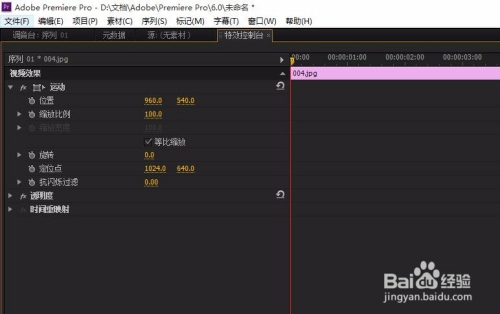 鼠标点击一下素材,在左上角打开其-特效节制台