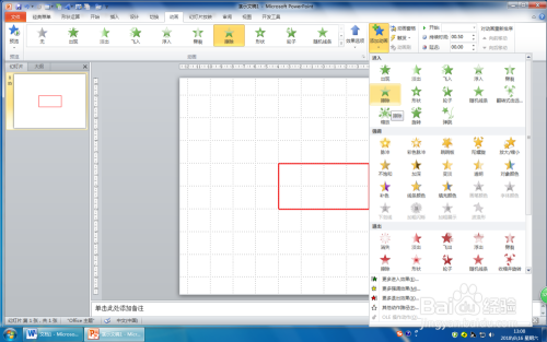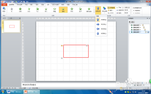 第三步:按着Ctrl键按照长方形各边呈现的挨次依次选中各边,单击“动画”选项卡,在“高级动画”组中单击“添加动画”按钮。