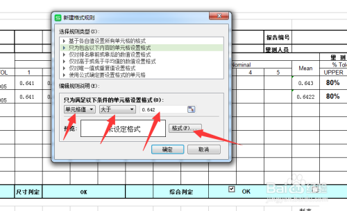 接着我们设置,单位格值,小于或等于,数值为0.642即可,如下图所示