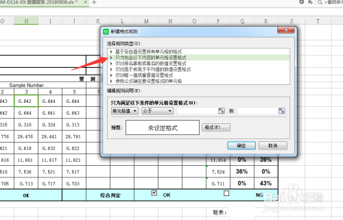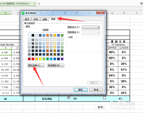 然后我们点击格局,设置填充结果,选择绿色,然后点击确定,发现小于或等于0.642的单位格已经填充为了绿色