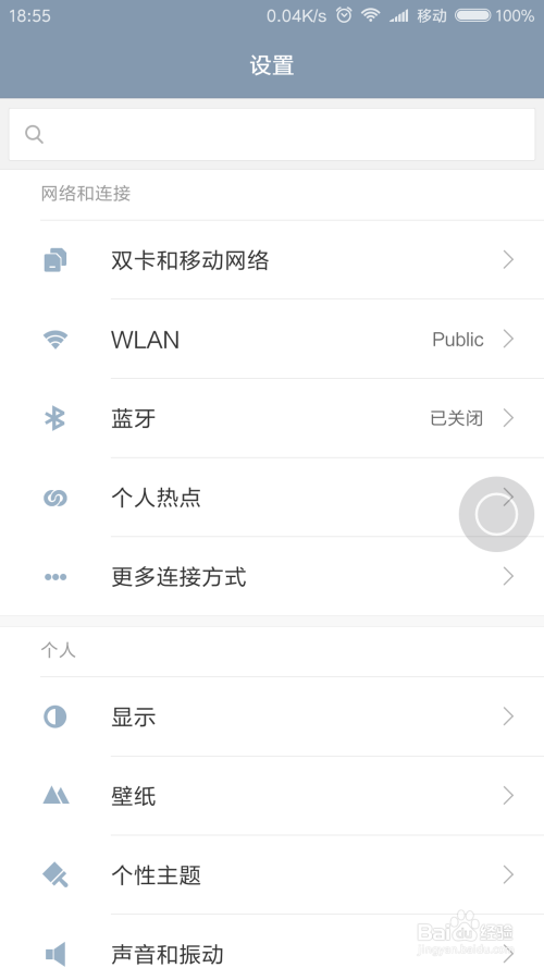 这里我以MIUI8为例,请大师打开MIUI桌面上的“设置”应用图标,点击该图标之后即可进入MIUI8的系统设置页面。