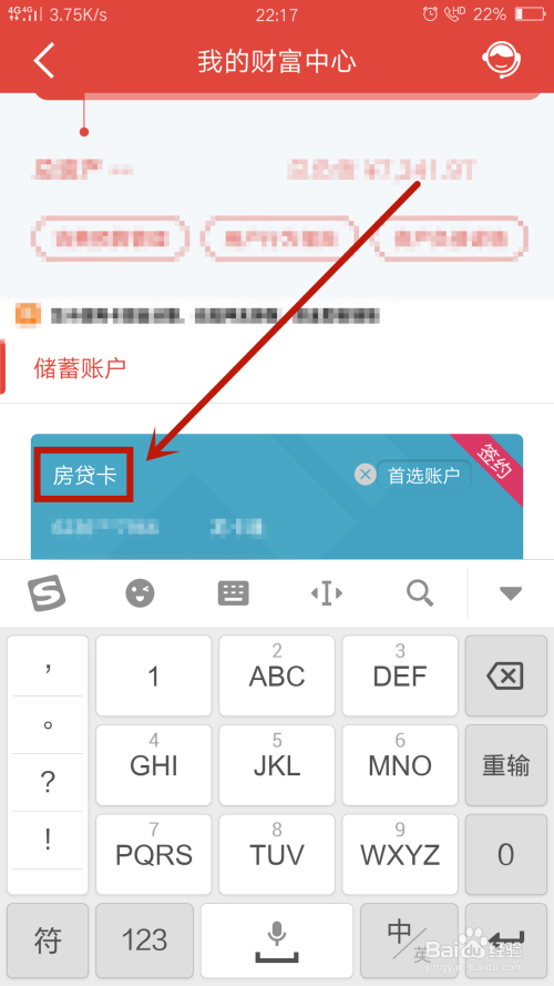 然后直接输入卡的别号即可,如房贷卡,再点击屏幕即可确定,如图所示