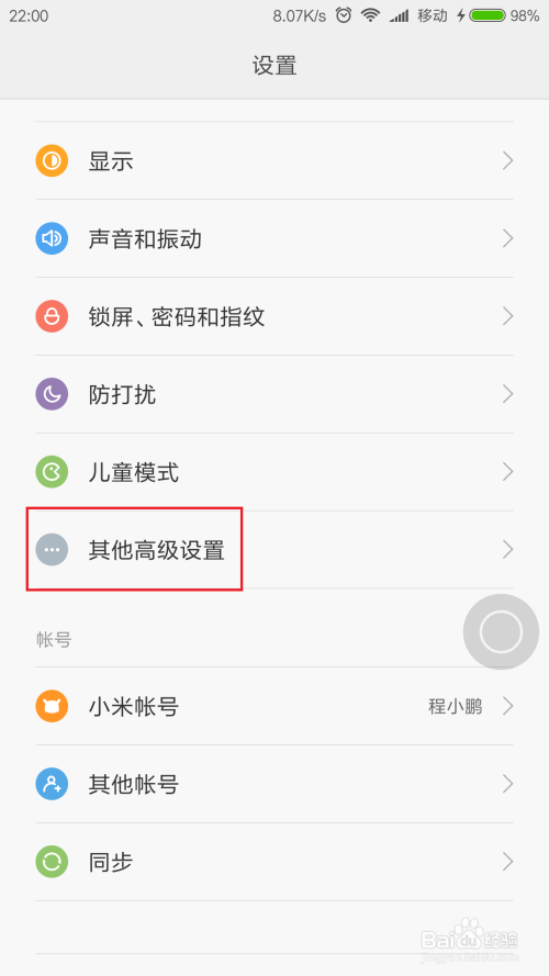 进入MIUI系统设置页面之后,点击页面中的“其他高级设置”选项即可进入系统高级设置页面。