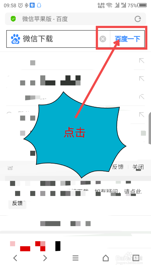 输入下载的软件名称,假设下载苹果微信,点击百度一下搜刮。操作如截图所示