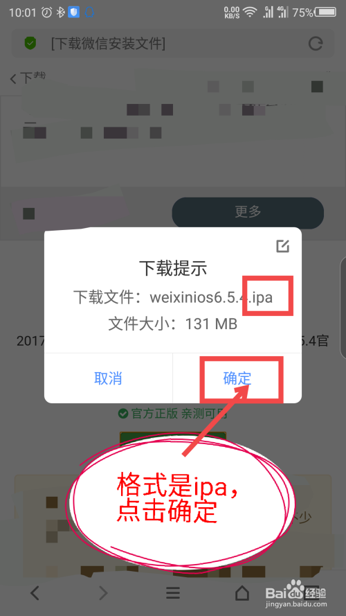 不要在官网上下载,用安卓是下载不了的。在其他的第三方网站下载,多打开几个网站看看,下载的软件格局是IPA的。如图所示