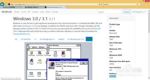 点击Windows下的Windows3.0/3.1,然后在弹出的页面点击3.11