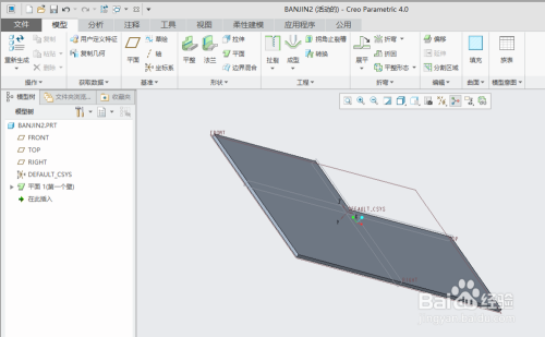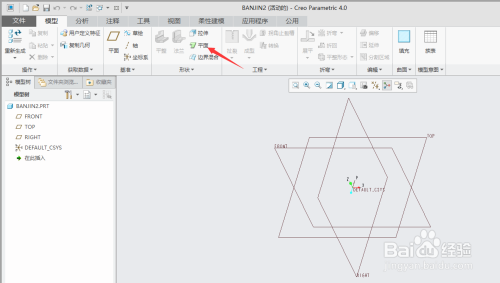 单击“模子”功能选项卡“外形”区域中的“平面”按钮。