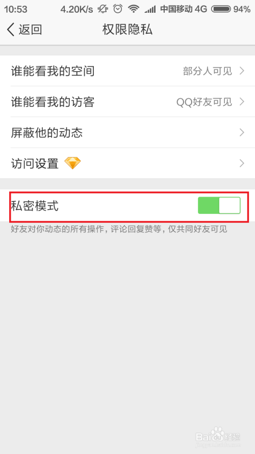 在QQ空间比来更新的版本中,我们已经可以利用QQ空间的私密模式啦,在私密模式下,若是不是配合老友的话,QQ空间动态不会全数显示的,可以有用庇护小我的隐私,小伙伴们速来围不雅我的经验啦。