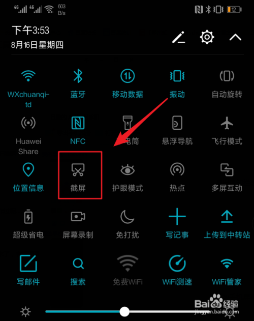 下滑通知栏后,直接选择通知栏中的“截屏”图标,即可对荣耀play手机屏幕进行截屏。