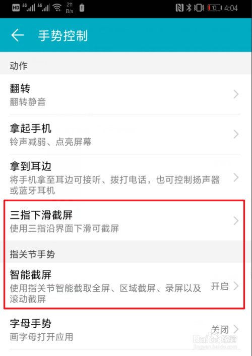 将截屏手势中的“三指下滑截屏”及“智能截屏”的功能打开,可以实现三指下滑或者经由过程指关节截取荣耀play的屏幕。
