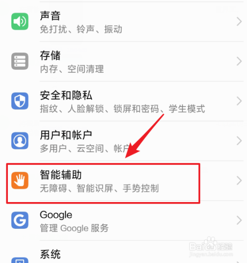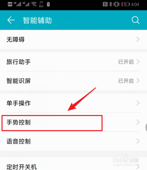 在智能辅助中,选择“手势节制”的功能选项,进入手势节制设置界面。