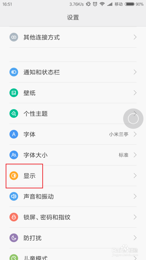 在MIUI系统中的设置菜单选项之后,打开设置页面之后,我们可以看到“显示”菜单选项,点击打开该设置项目。