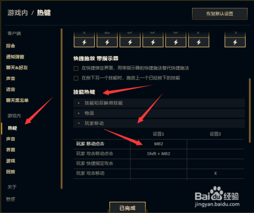 点击左侧列表项“游戏内”的“热键”选项,然后标的目的下滚动,找到“技术热键”中的“玩家移动”,点击它然后找到“玩家 移动点击”